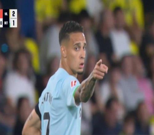 雷速体育10月19报道 西甲联赛第9轮,皇家贝蒂斯客场对阵比利亚雷亚尔,比赛第67分钟,安东尼接弗纳尔斯分边,禁区...