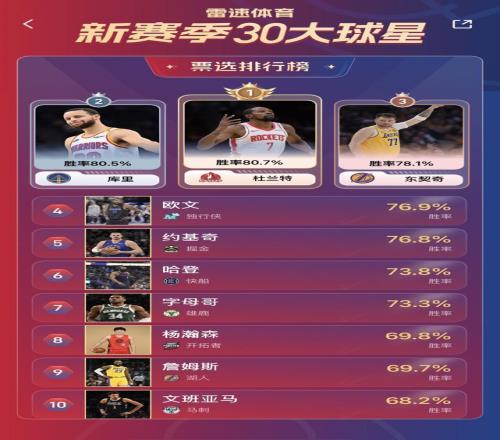 雷速体育10月14报道 雷速NBA新赛季30大球星活动正在如火如荼地进行中。