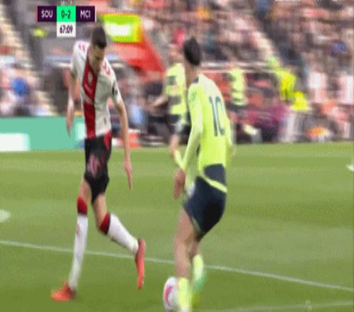说到进球,我们来看看你过去三年半里进的一些球。第一个是2023年对南安普顿的那个球。我们现在暂停这一刻。我觉得今年,球可能会传得更早一些,但当格拉利什在左边那样触球、再触球、再触球,然后传中时,你当时在禁区里在想什么?